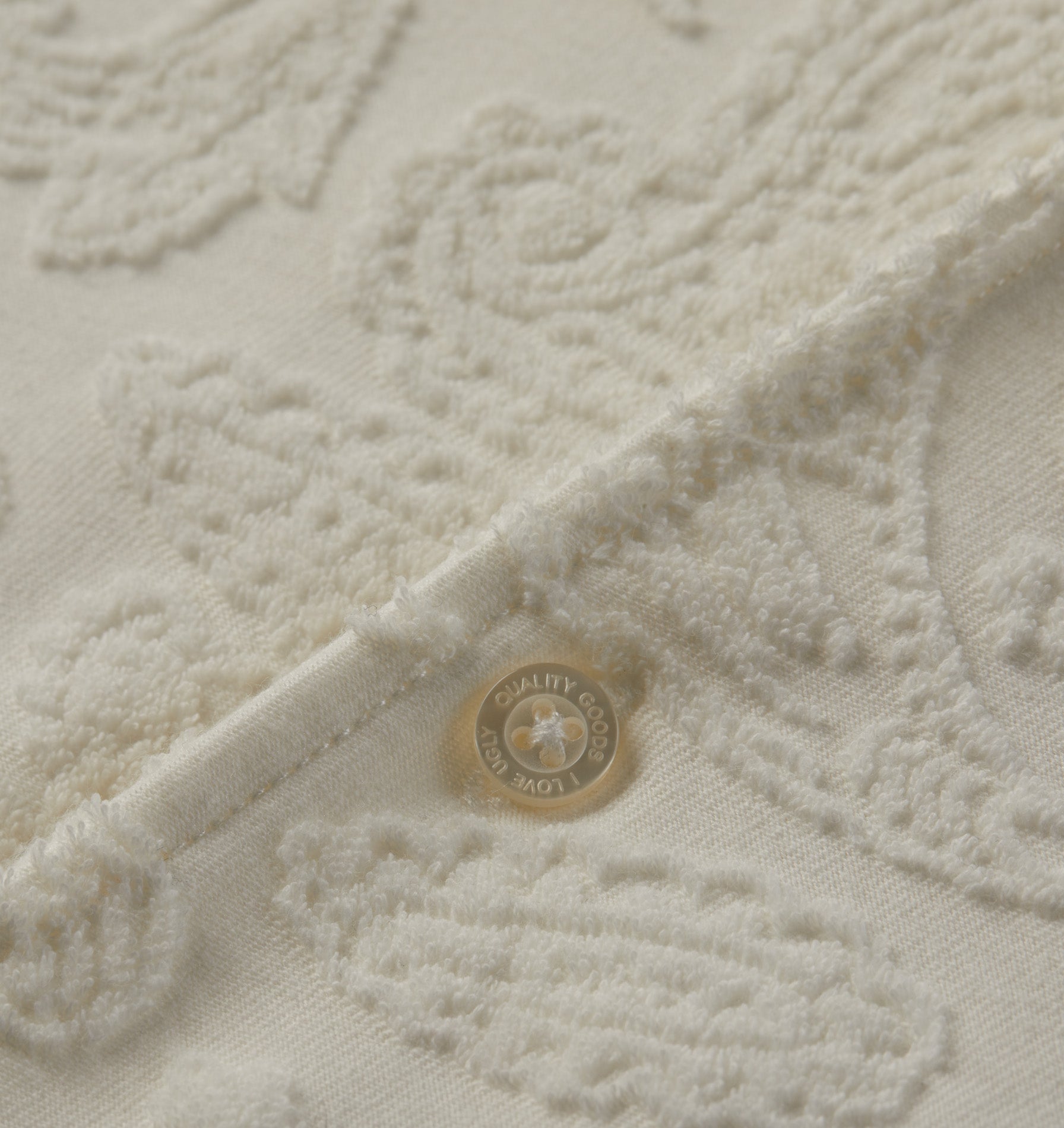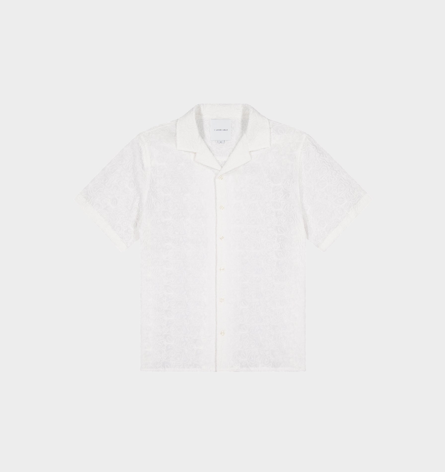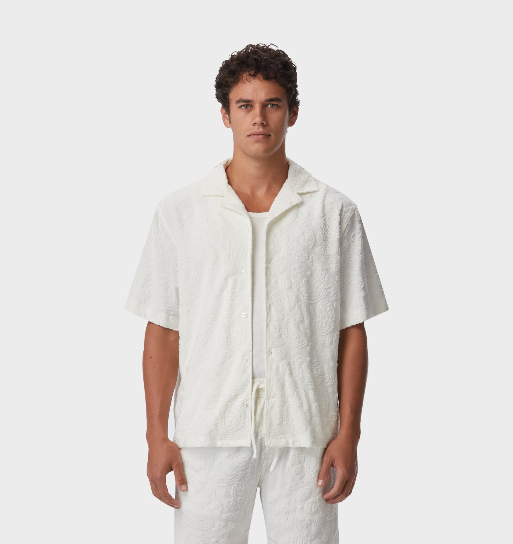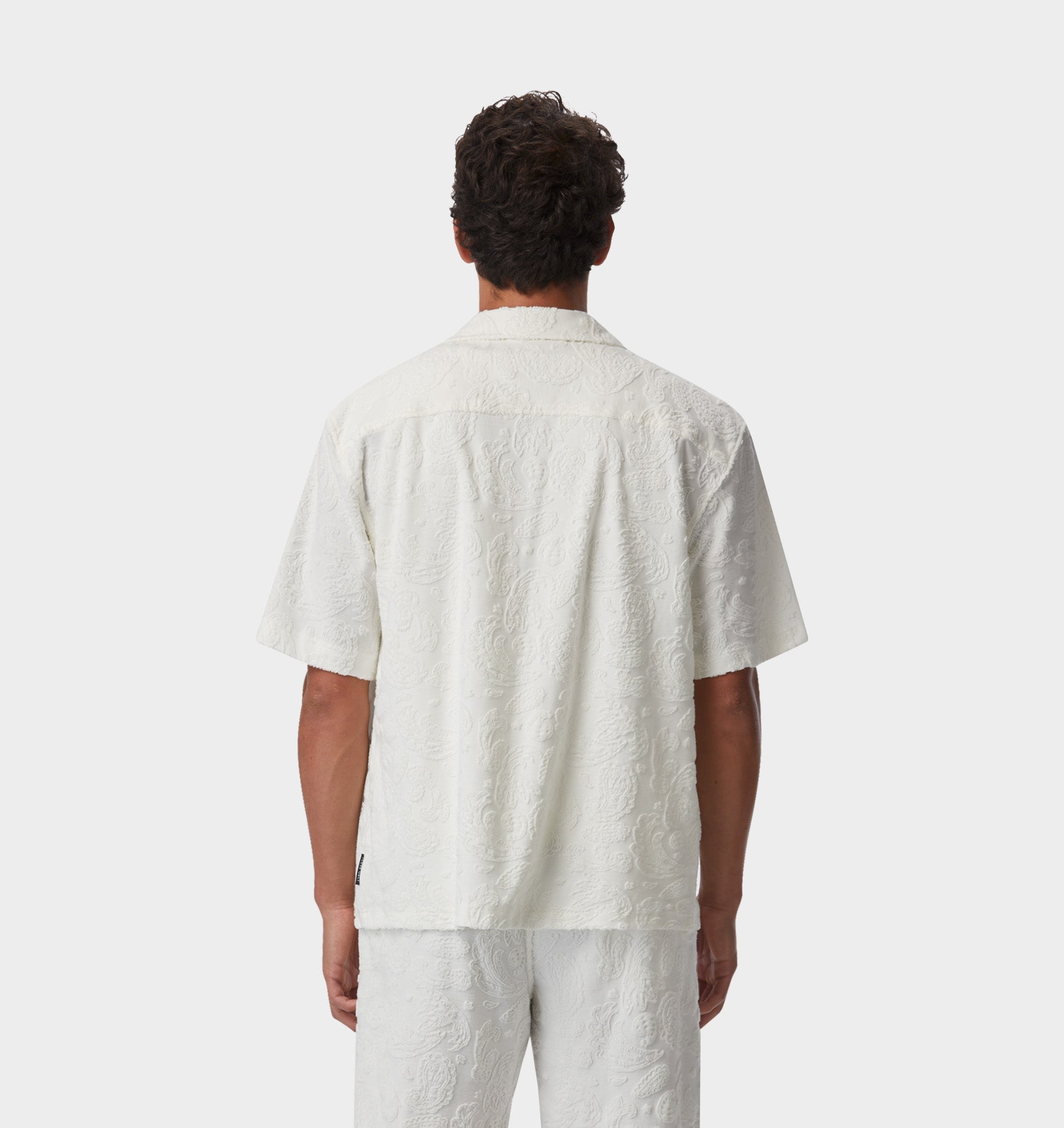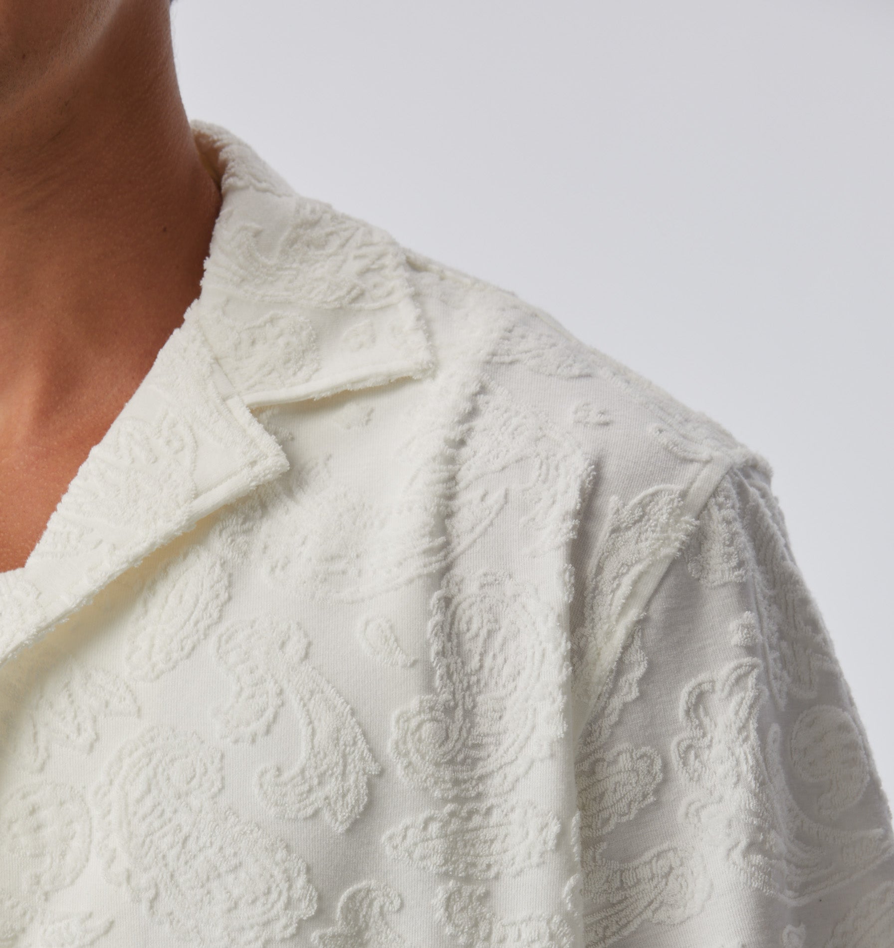 Textured Box Cuban Collar SS Shirt - White Stripe