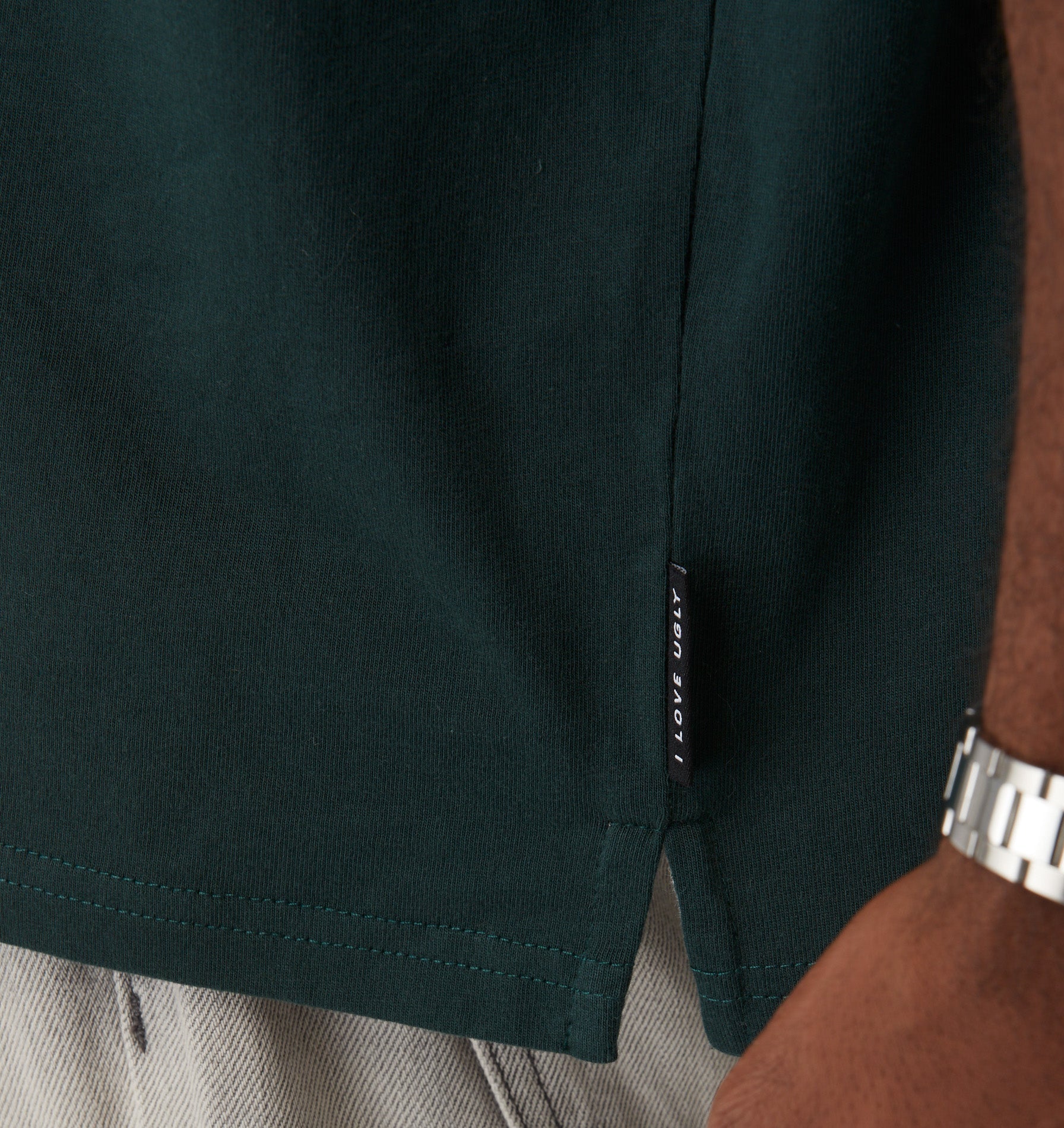 Featuring a ribbed collar, ILU label at the side seam and our I Love Ugly 3D print on the left chest. As this silhouette is very oversized and loose-fitting, we recommend sizing down to achieve the perfect Box Fit style.