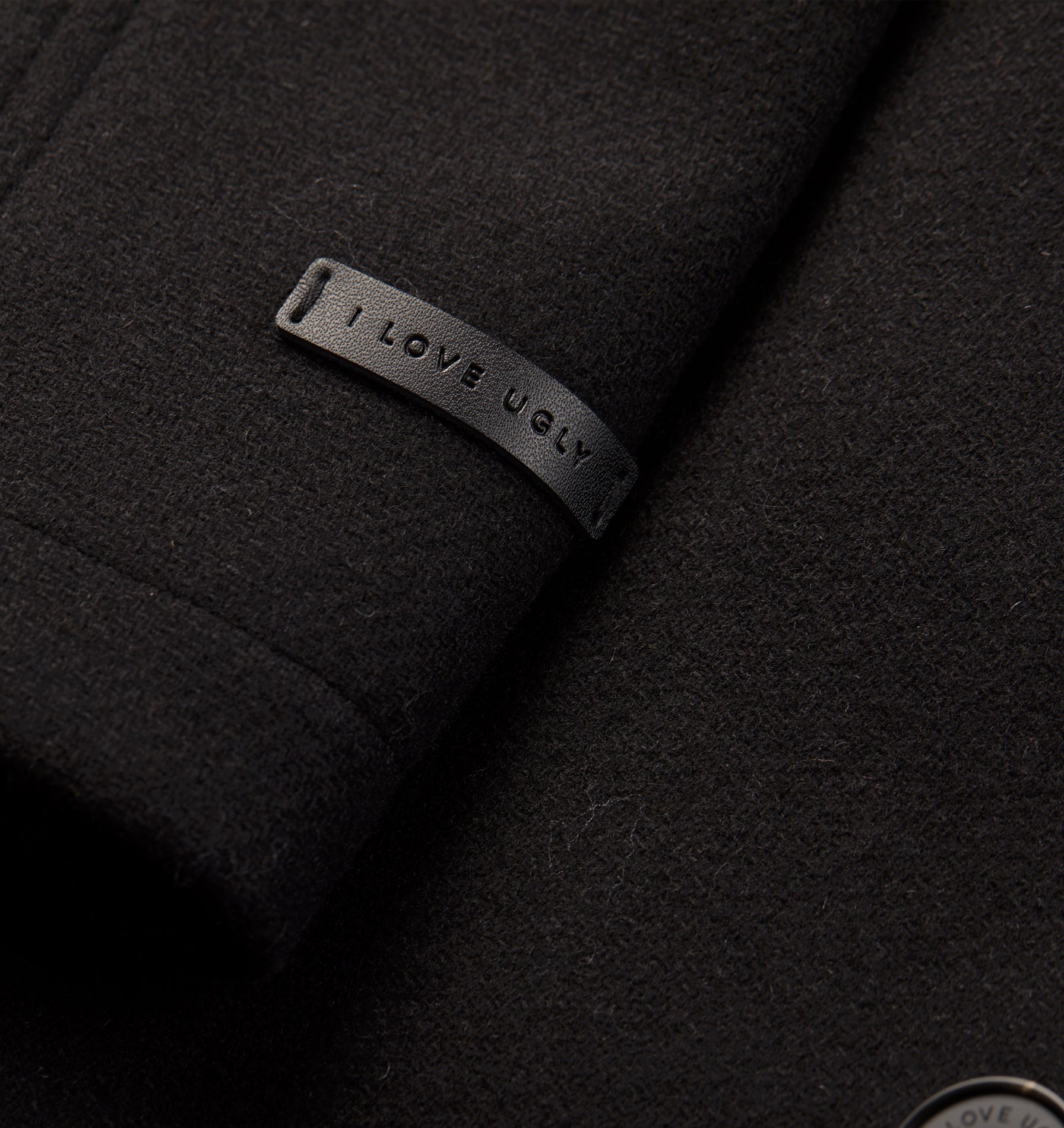 - Leather label on leff sleeve hem
