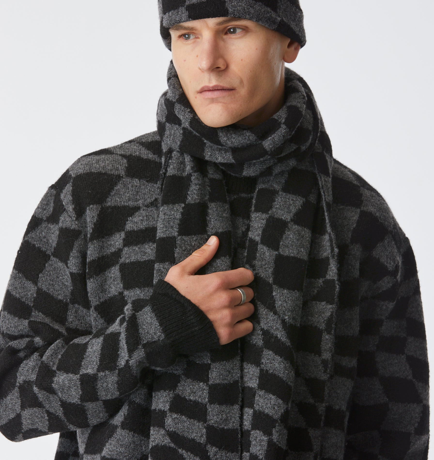 Perfect for layering this winter, introducing the Checkerboard Logo Scarf.