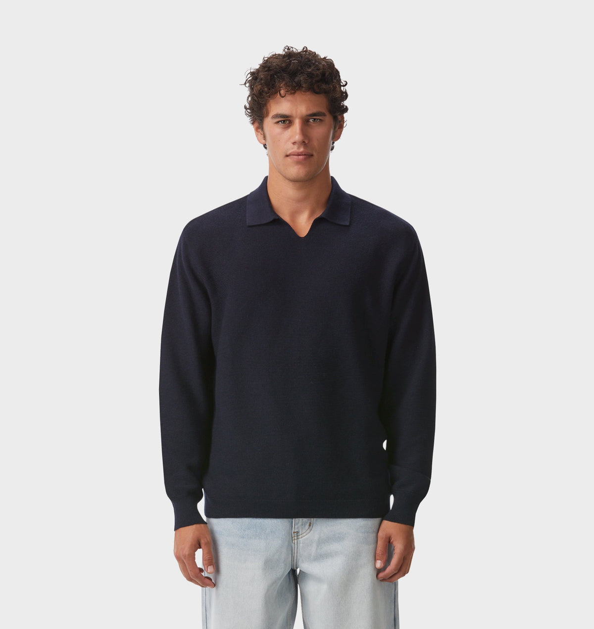 - Elijah Knit LS Polo - Navy