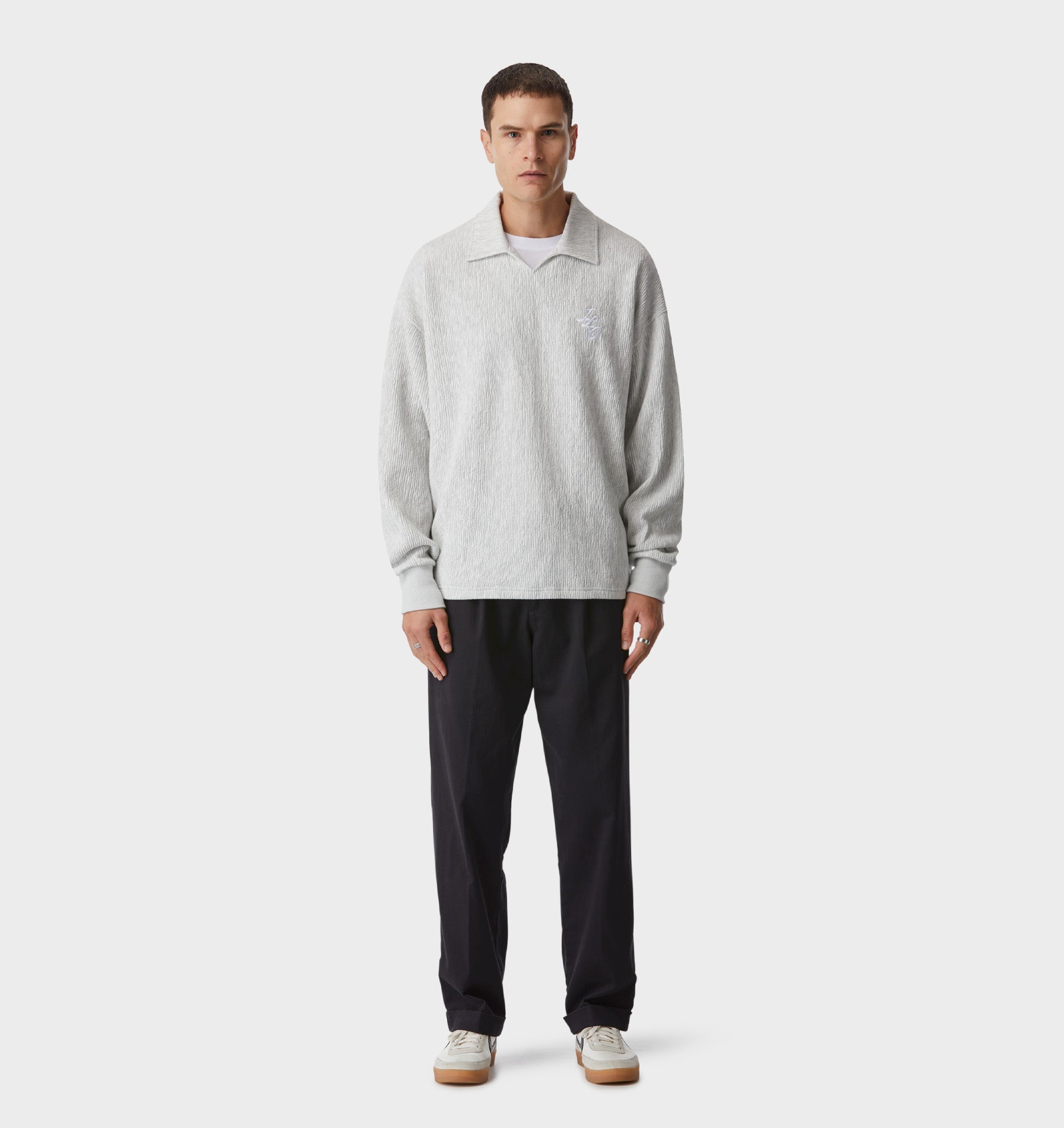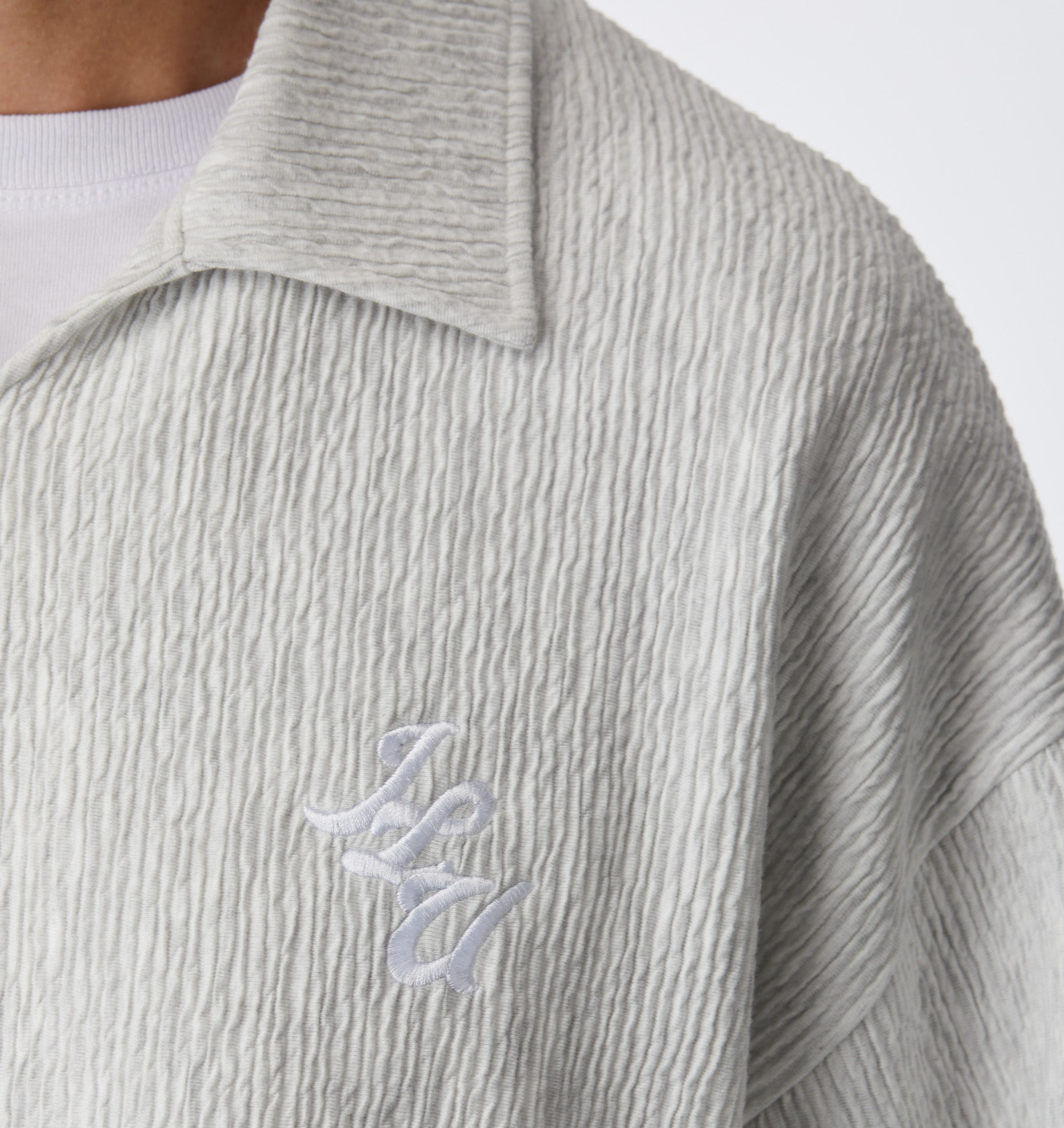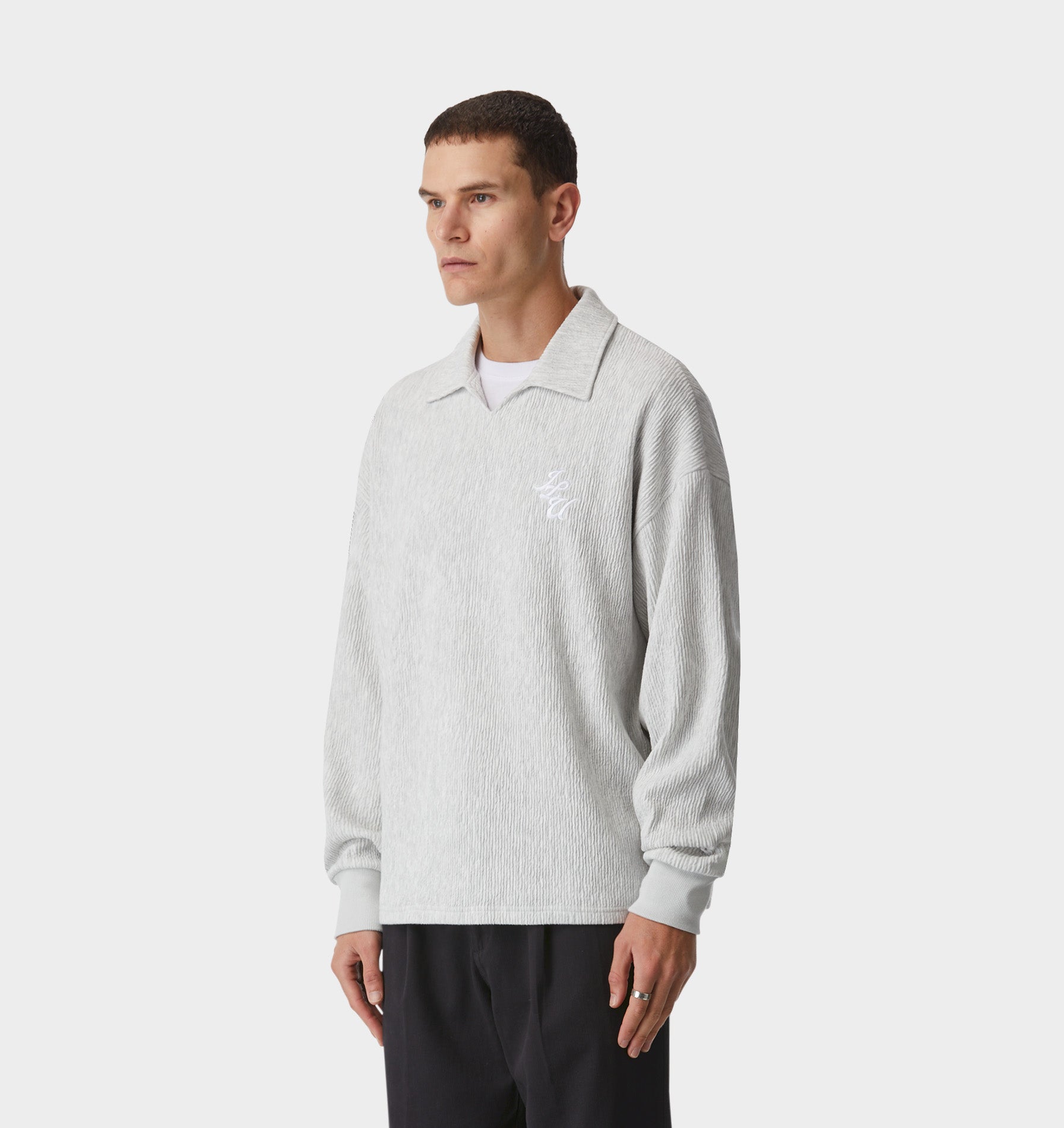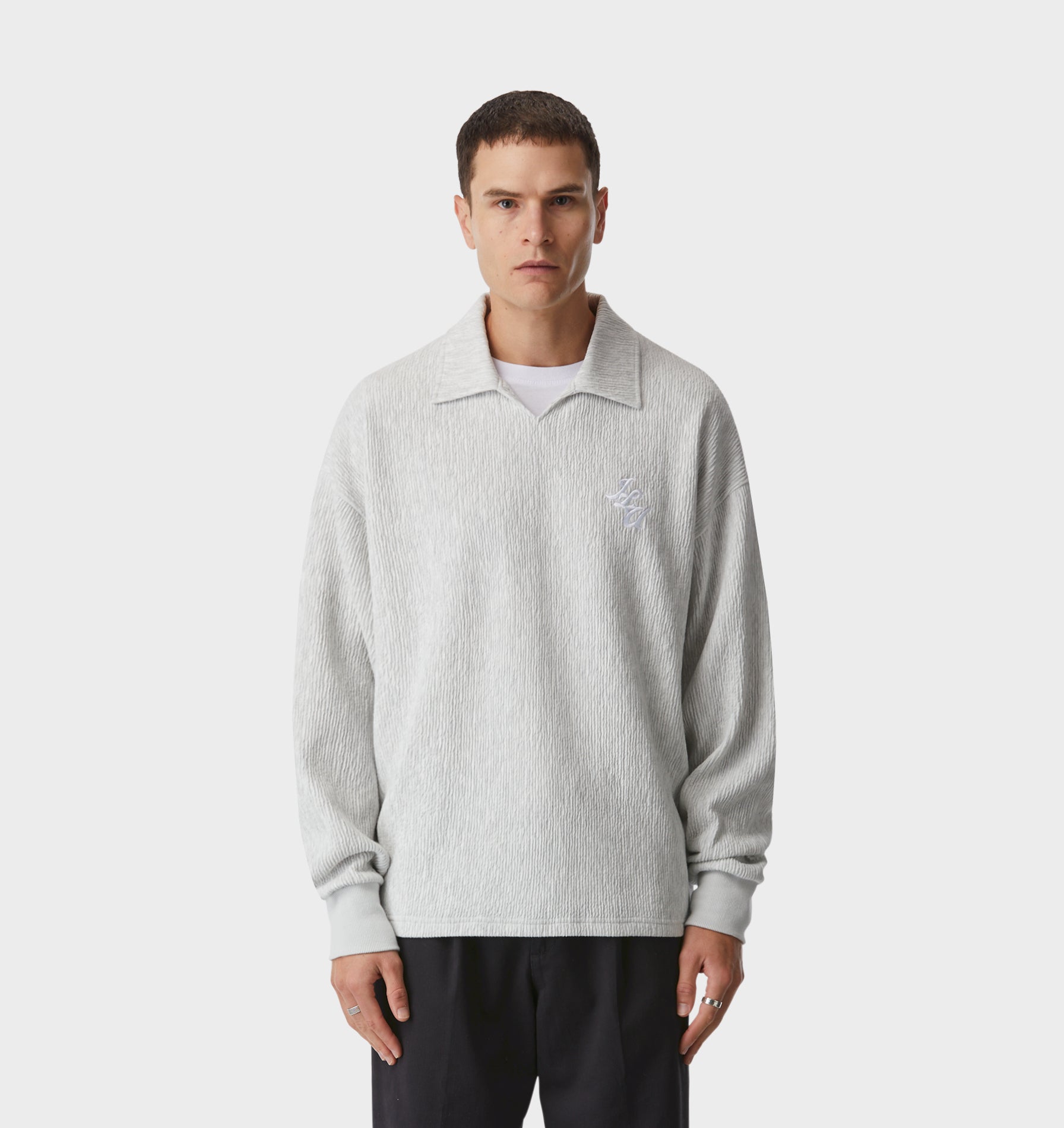 This oversized boxy fit polo is bound to become a staple in your wardrobe. Featuring custom ILU embroidery at the left chest and ribbed cuffs, the textured fabrication and premium cotton blend makes this polo an easy yet effortlessly cool item to add to your uppers collection.