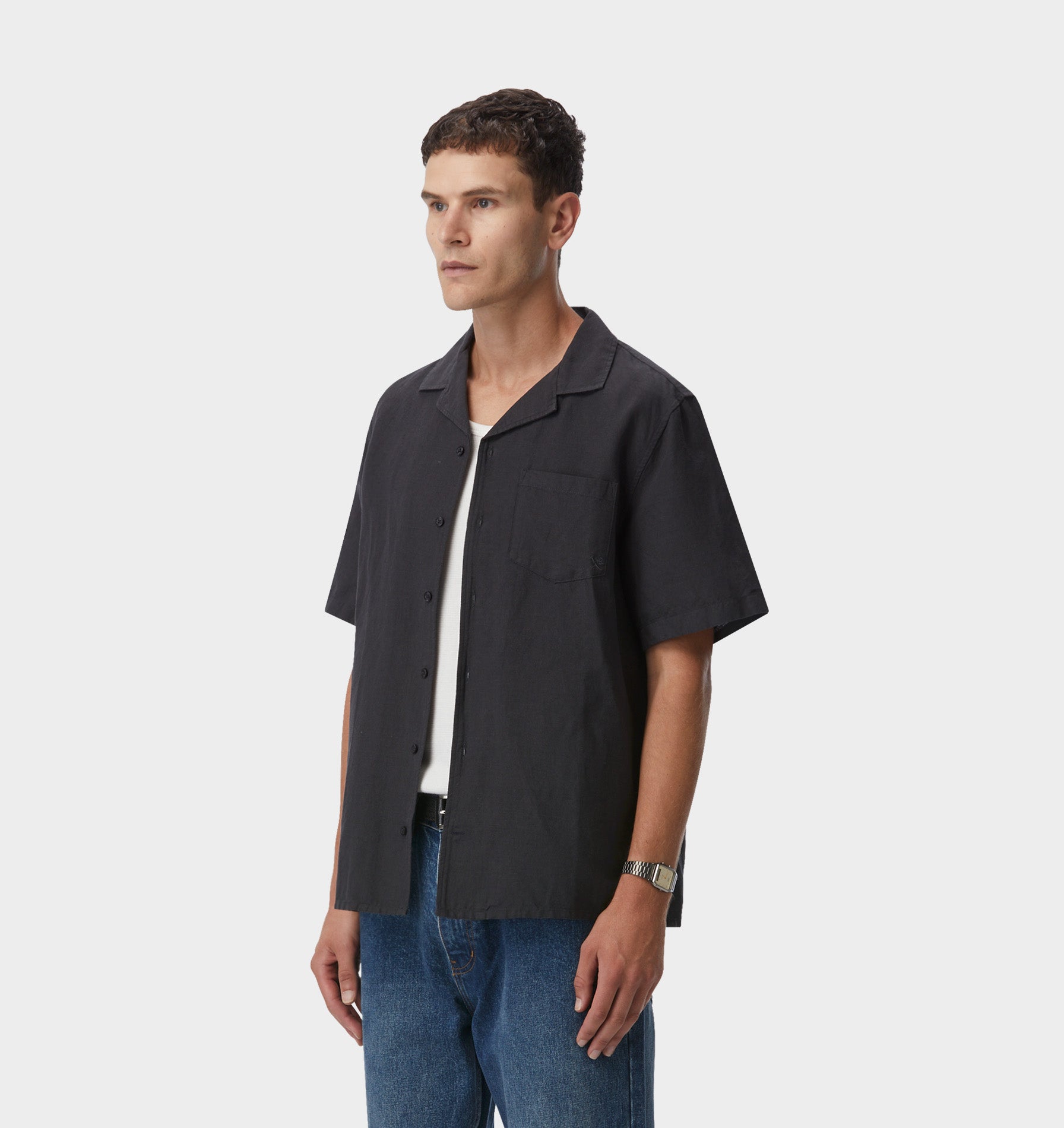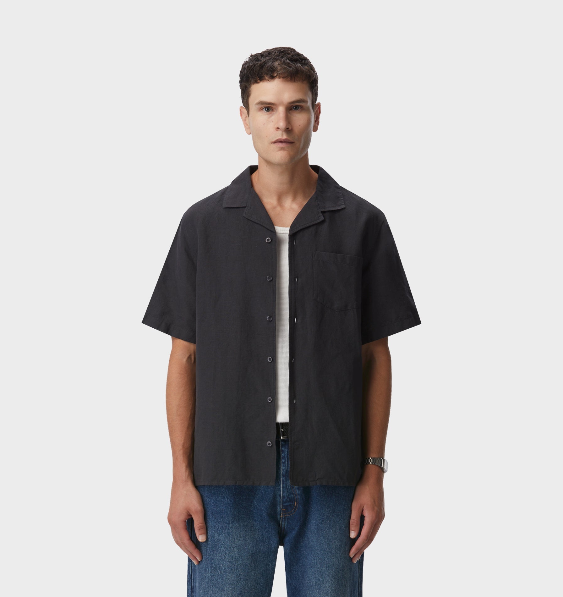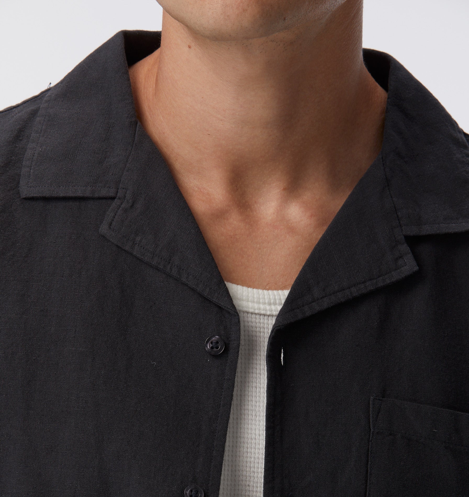 Linen Cuban Collar SS Shirt - Charcoal