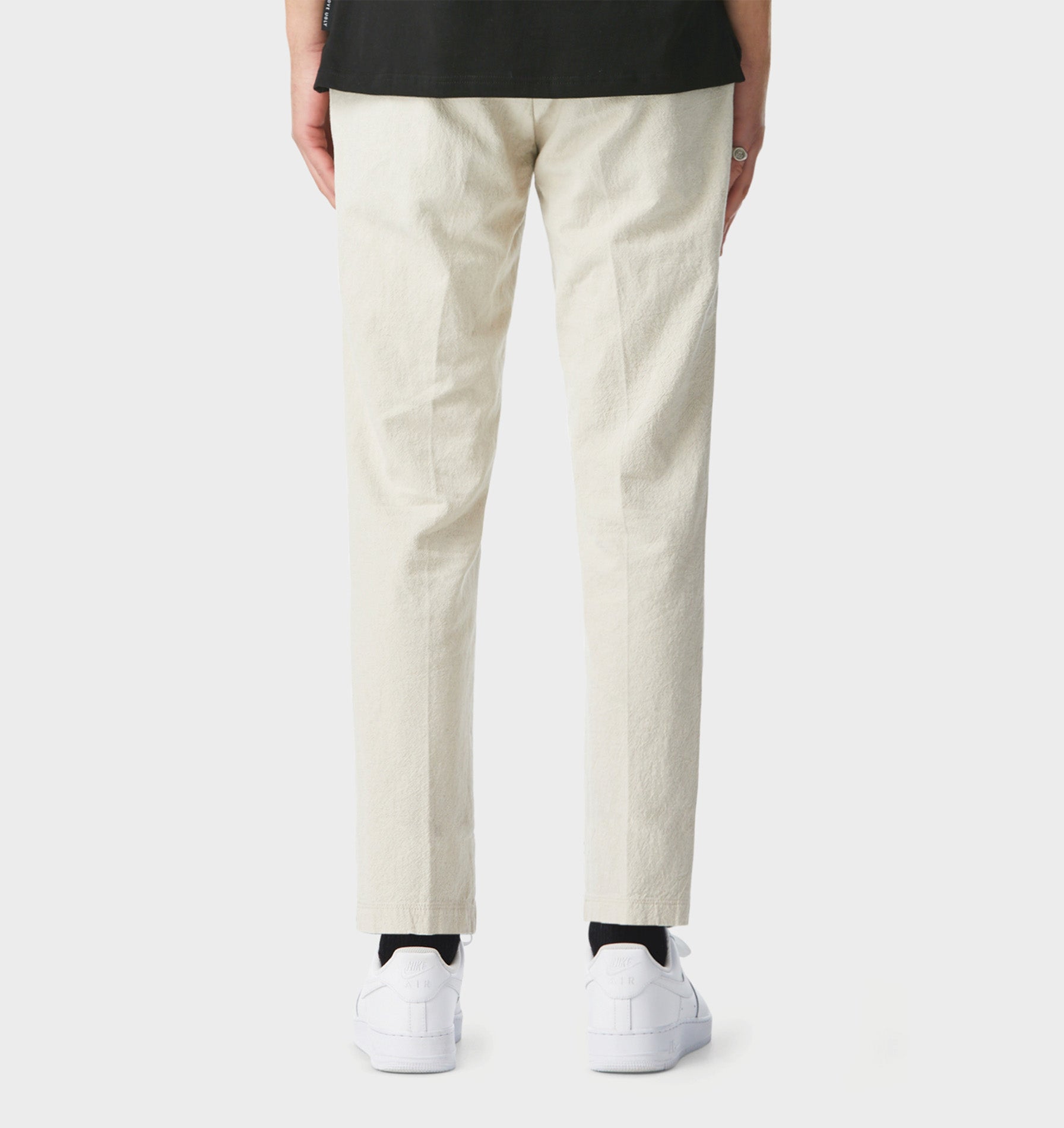 Designed in a premium linen and cotton fabrication with a relaxed fit and feel that will only get softer with time. Featuring front and back pockets, YKK fly opening, belt loops and an ILU patch label at back for a subtle detail.