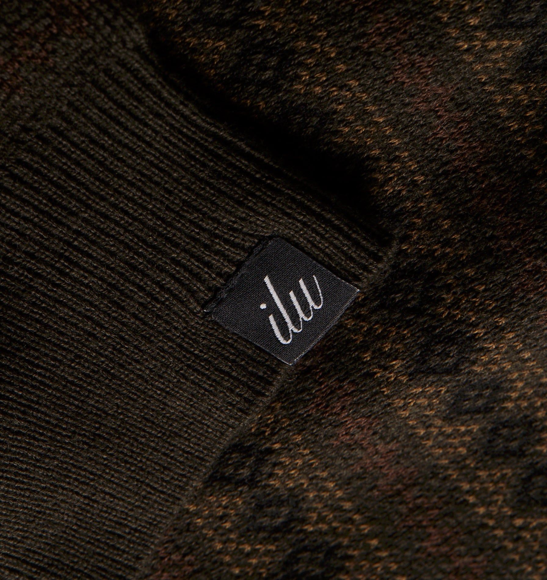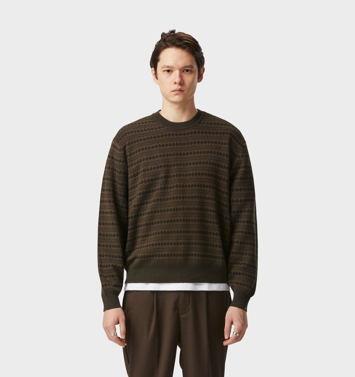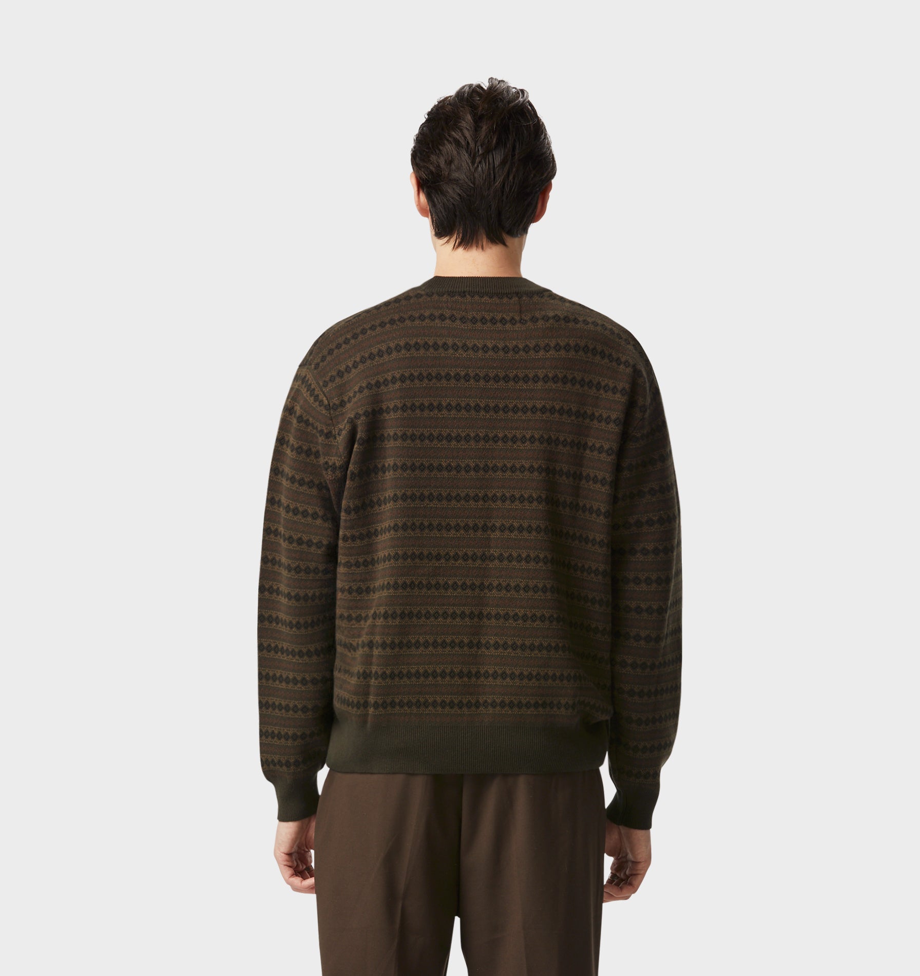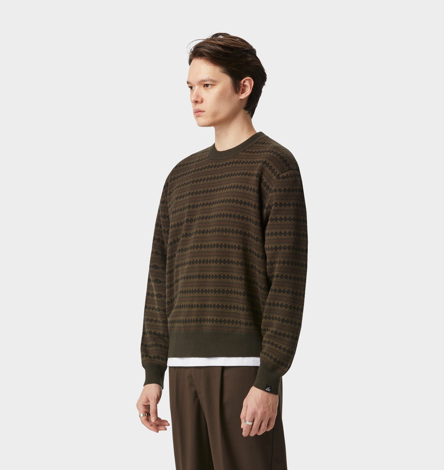 Mosaic Cropped Knit Sweater - Olive/Brown
