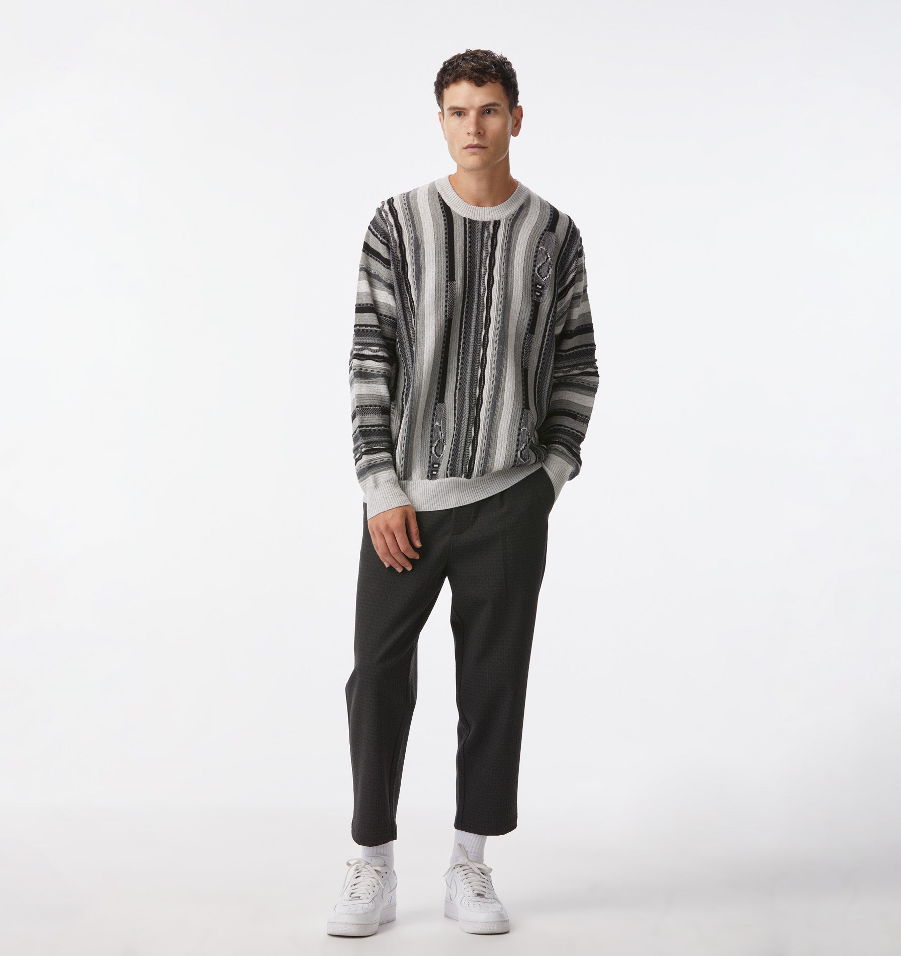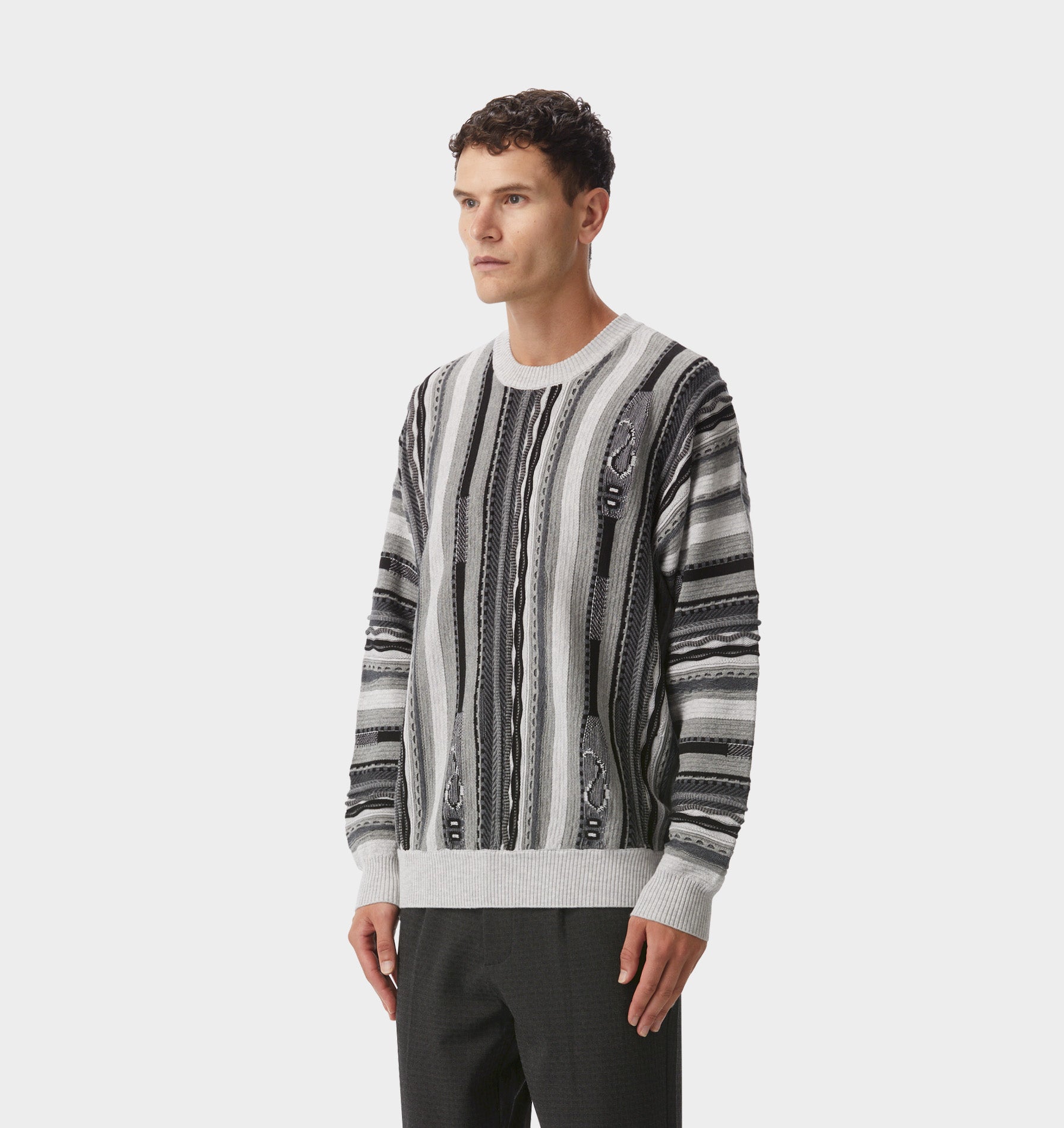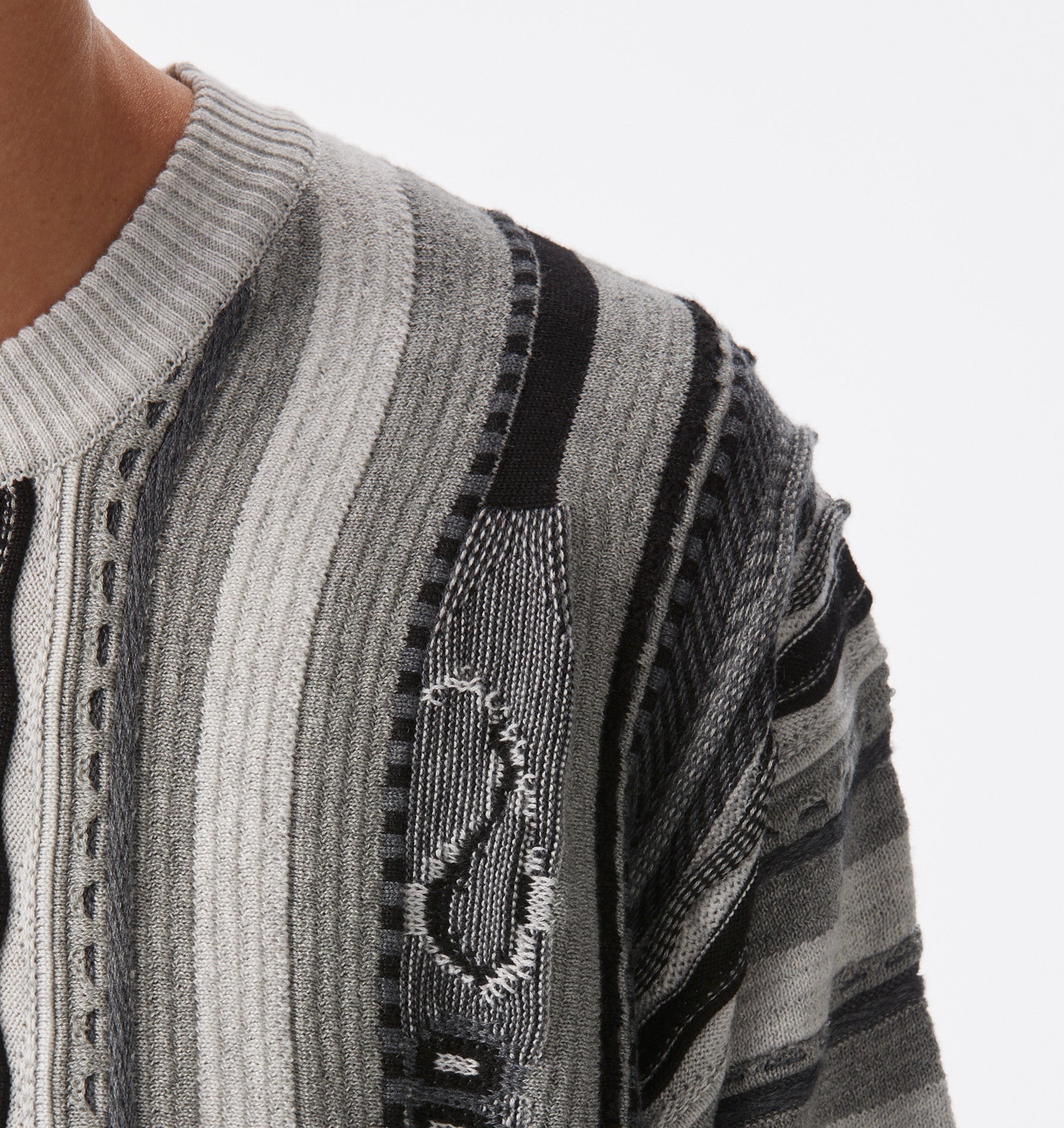 Featuring a multi textured striped knit construction with a relaxed fit in a lightweight lace knit fabric, and considered detailing for the highest quality.