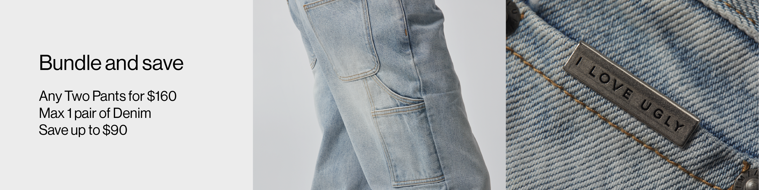 bundle & save. buy a pair of pants & a pair of denim for $160
