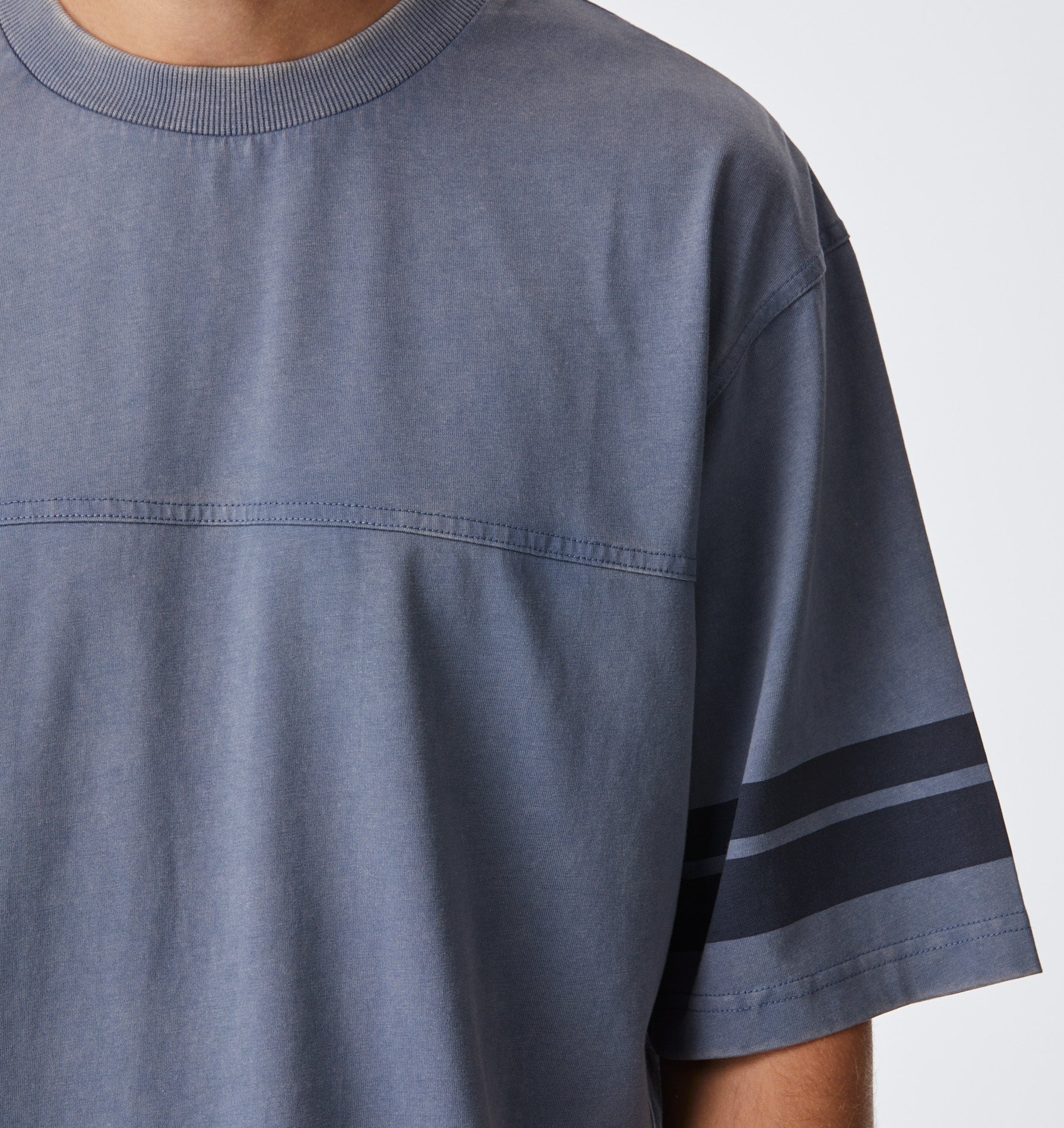 The Athletic Tee takes inspiration from vintage sportswear and updates it with clean lines and subtle detailing. Featuring a front and back panel seams for structure, printed stripes on the sleeves for a nod to classic athletic kits, and washed finish for a vintage look.