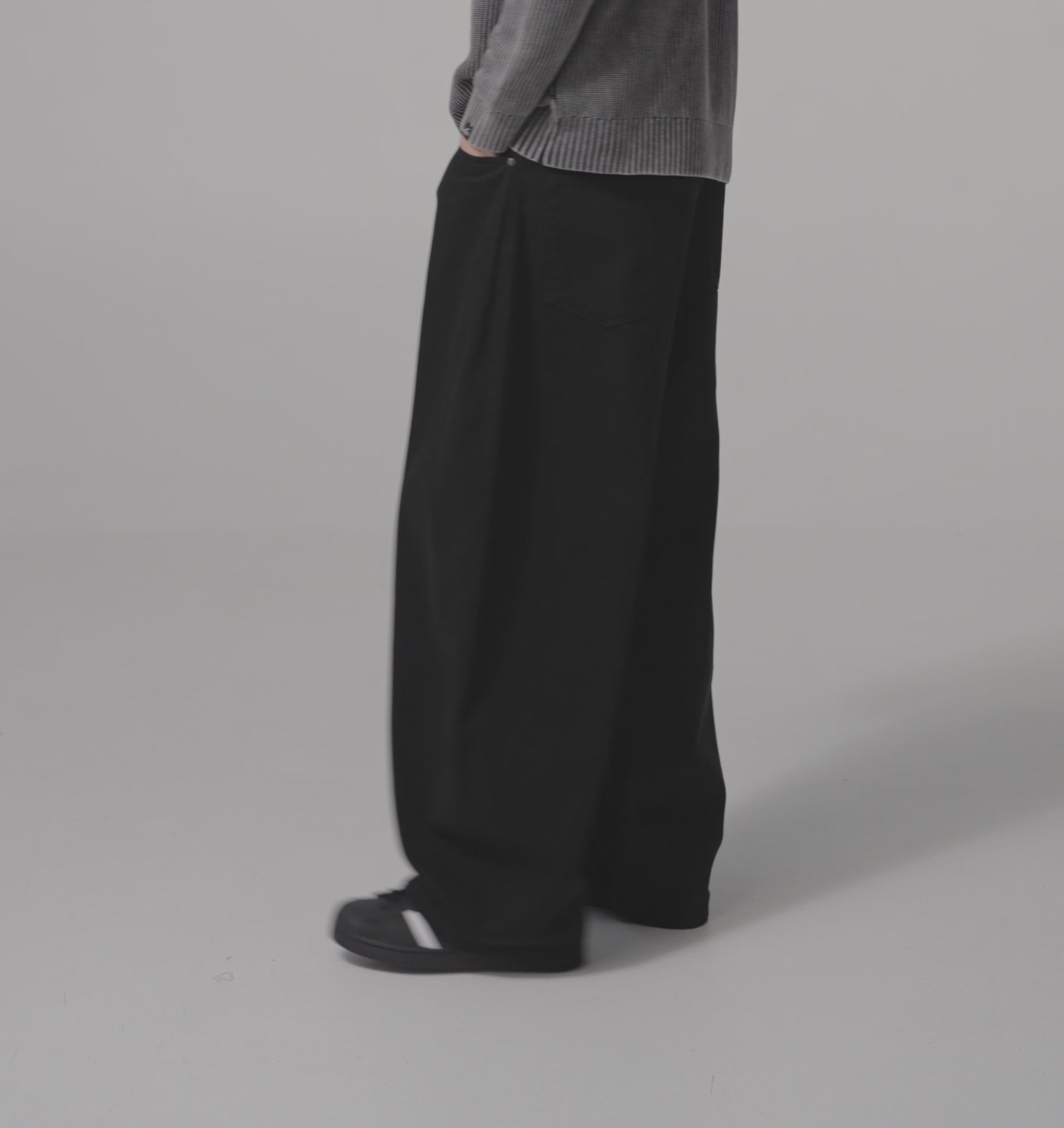 It's wide through the leg, featuring structure and volume. It’s a deliberate shape, built to break from the usual. Cut from heavyweight twill fabric and finished with clean front pockets, ILU-embroidered back patch pockets, and a tonal leather patch at the waistband. Inside, you’ll find our signature pocket print and fly embroidery. Custom gunmetal hardware and a YKK zip front fly round it out.