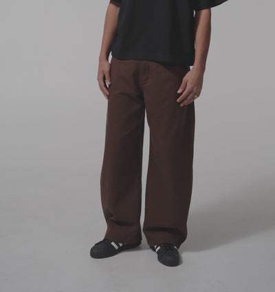 It's wide through the leg, featuring structure and volume. It’s a deliberate shape, built to break from the usual. Cut from heavyweight twill fabric and finished with clean front pockets, ILU-embroidered back patch pockets, and a tonal leather patch at the waistband. Inside, you’ll find our signature pocket print and fly embroidery. Custom gunmetal hardware and a YKK zip front fly round it out.