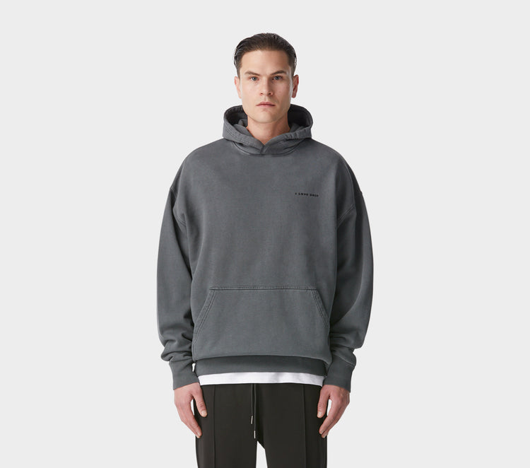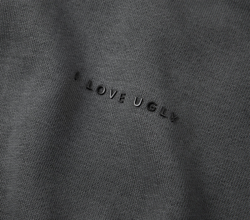 Featuring a double-lined crossover hood, I Love Ugly 3D print on the left chest and wrapping it up altogether in the relaxed oversized box fit silhouette.