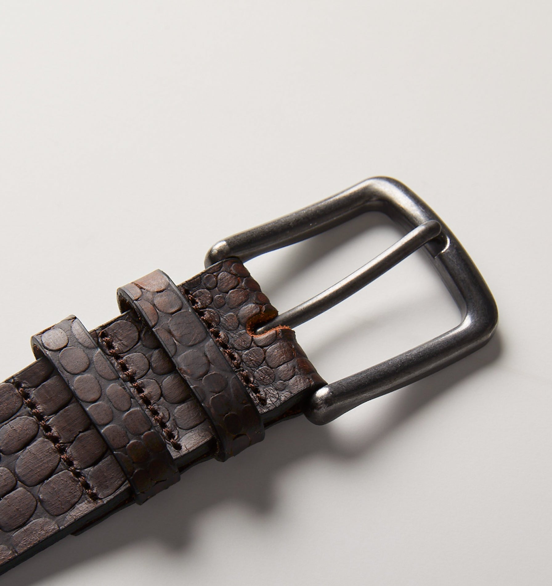 Embossed Reptile Leather Belt - Brown