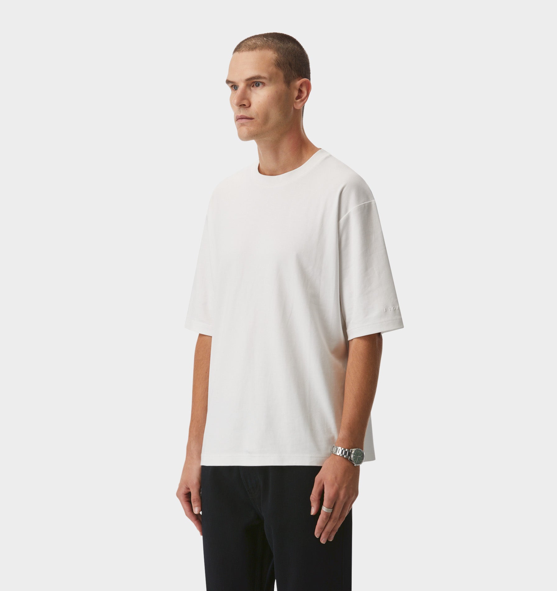It’s simple on purpose. A clean crew neck, a ribbed collar that keeps its shape, and an embossed ILU logo at the sleeve that speaks quietly, but says a lot. No fuss. No gimmicks. Just a tee made properly.