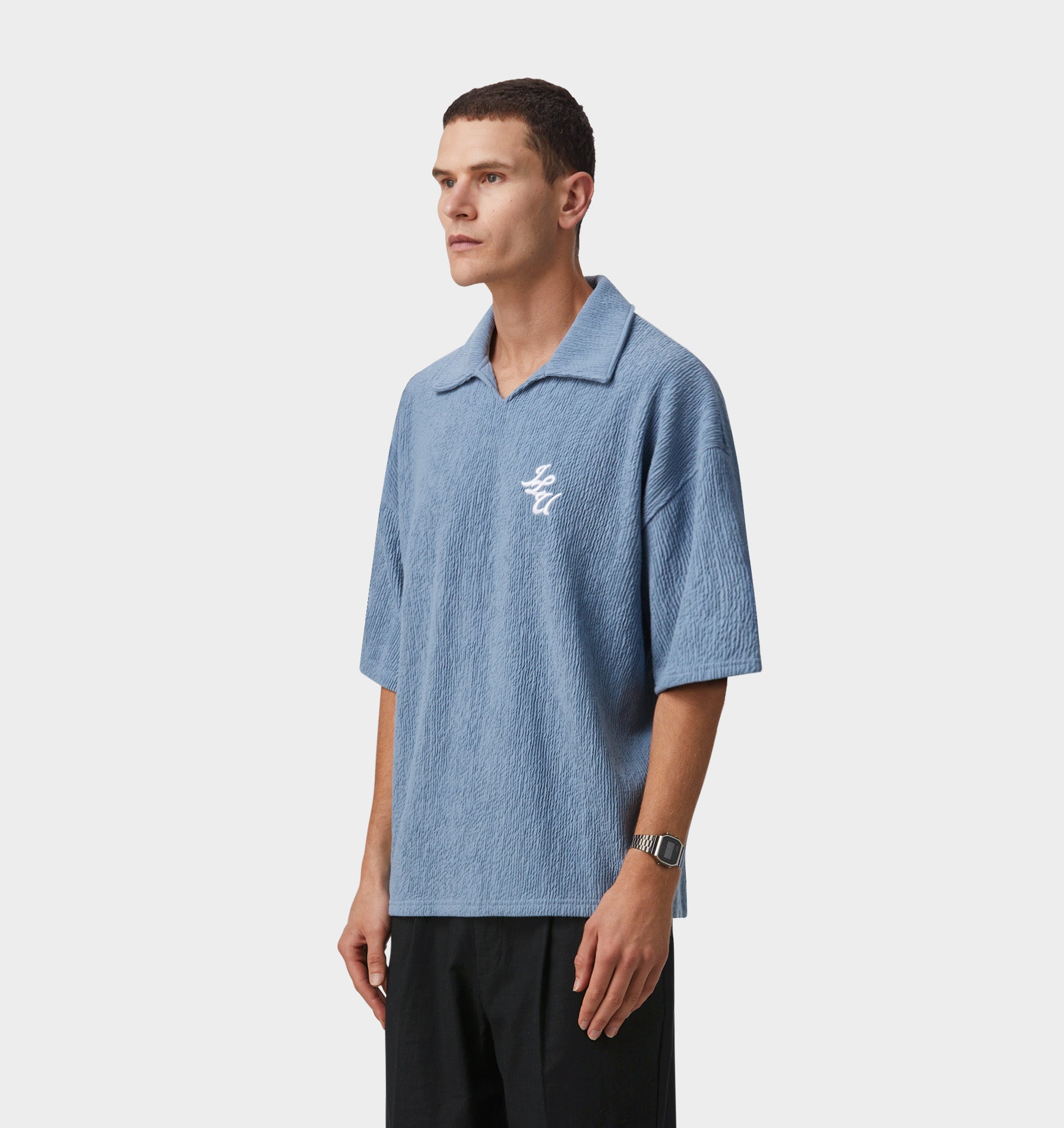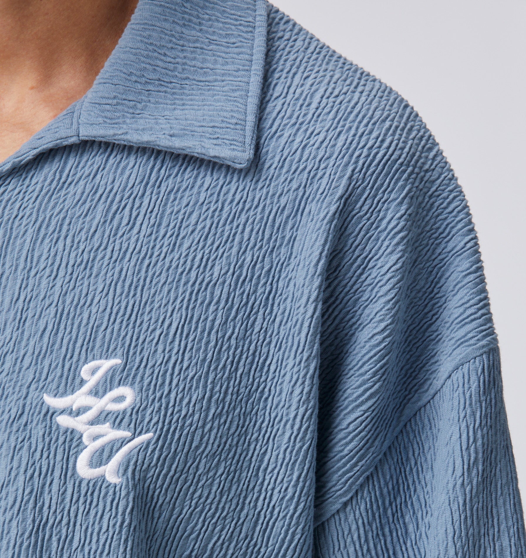 This oversized boxy fit polo is bound to become a staple in your wardrobe. Featuring custom ILU embroidery at the left chest, the textured fabrication and premium cotton blend makes this polo an easy yet effortlessly cool item to add to your uppers collection.