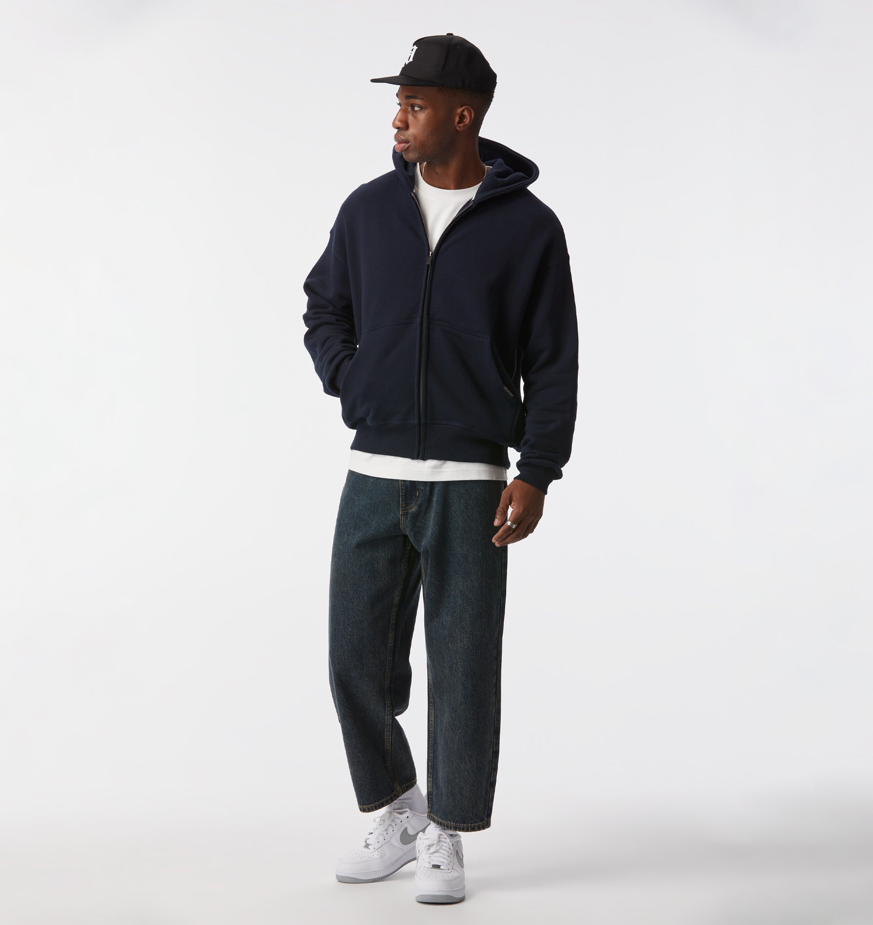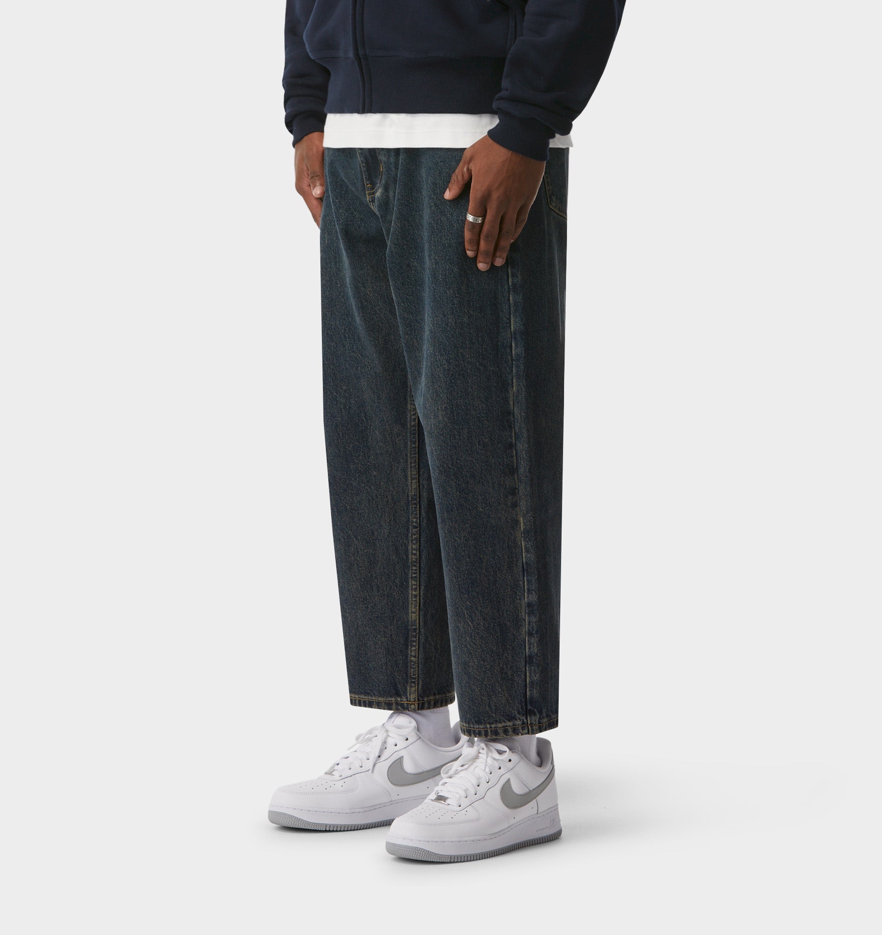 Whether you’re looking to transition into a more relaxed look or you love your baggy denim and are on the hunt for an easy jean with a clean, cropped style. Fitting much roomier across the hip, thigh and leg.