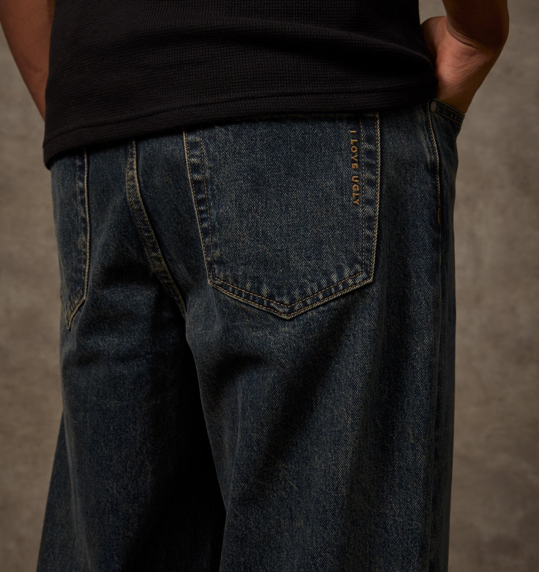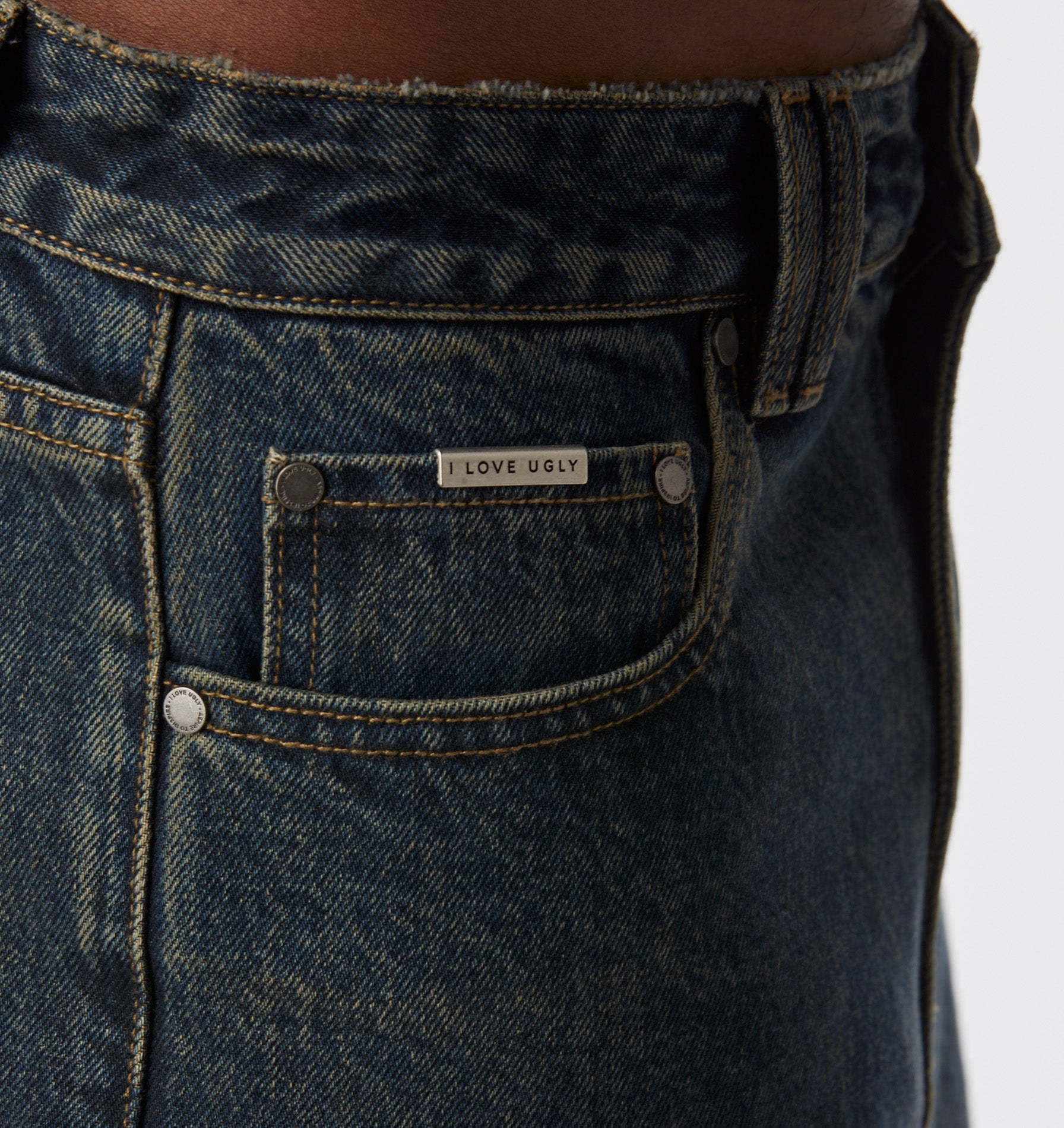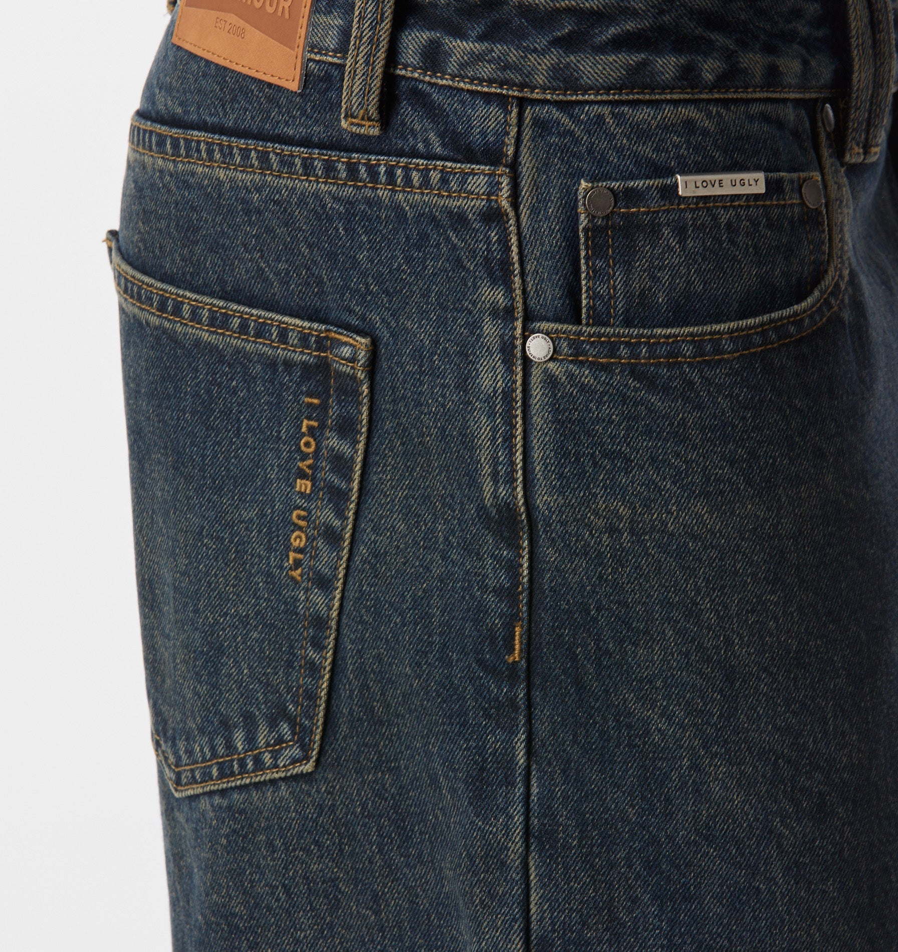 - I Love Ugly embroidery at back pocket